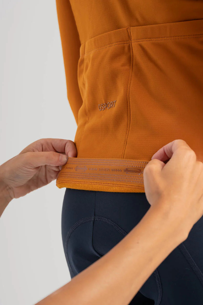 - Terminación Bonding 4 cm (costura sin hilo) y goma trasera personalizada Gsport a tono, para fijar el maillot en su posición durante el pedaleo.